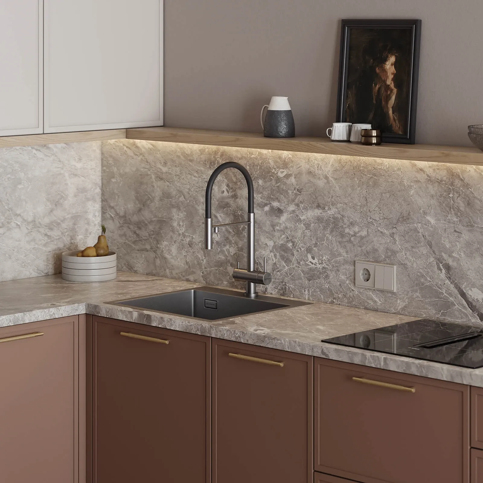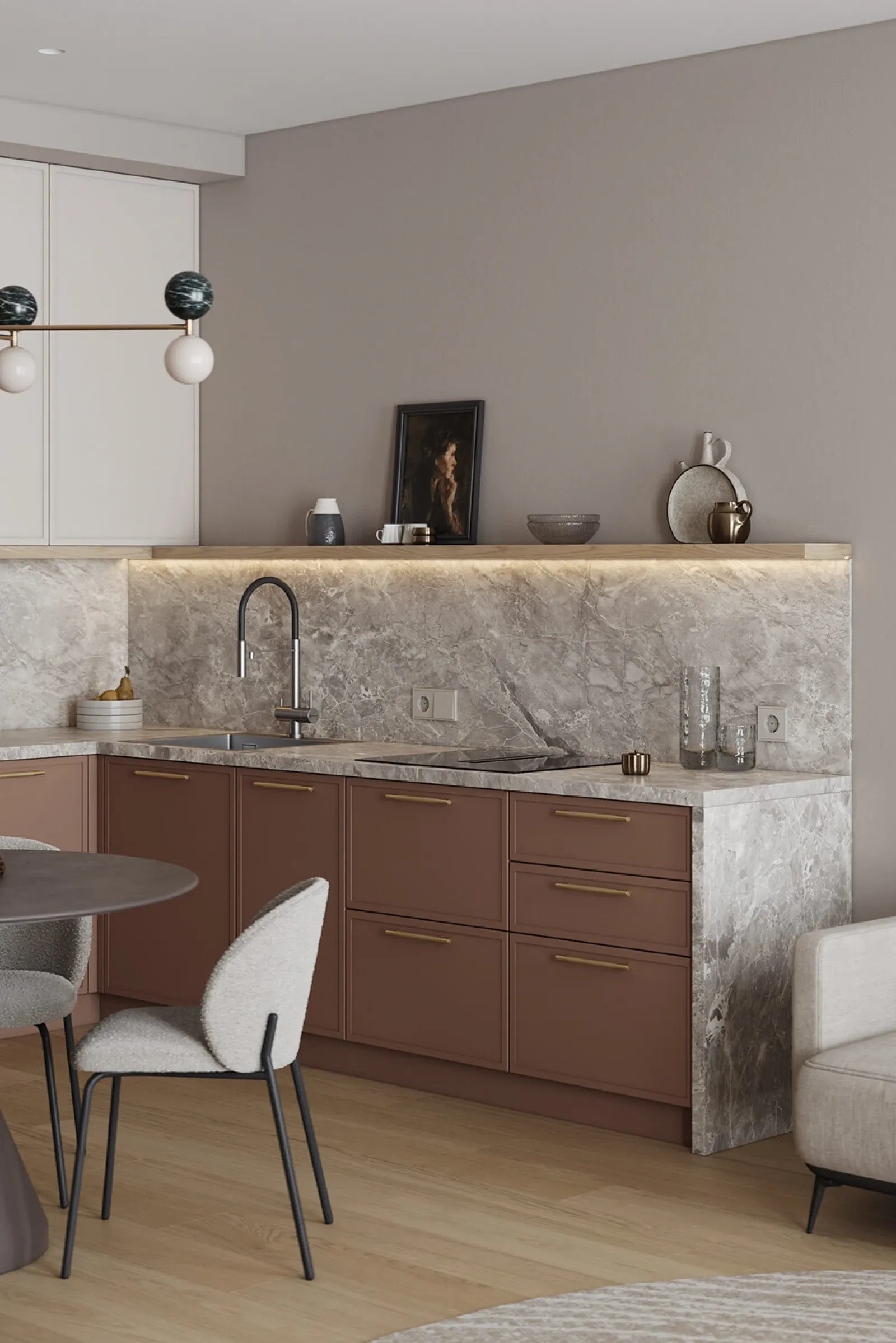 Фасады: Рокси (МДФ/ПВХ), цвет Мока / Морской Жемчуг