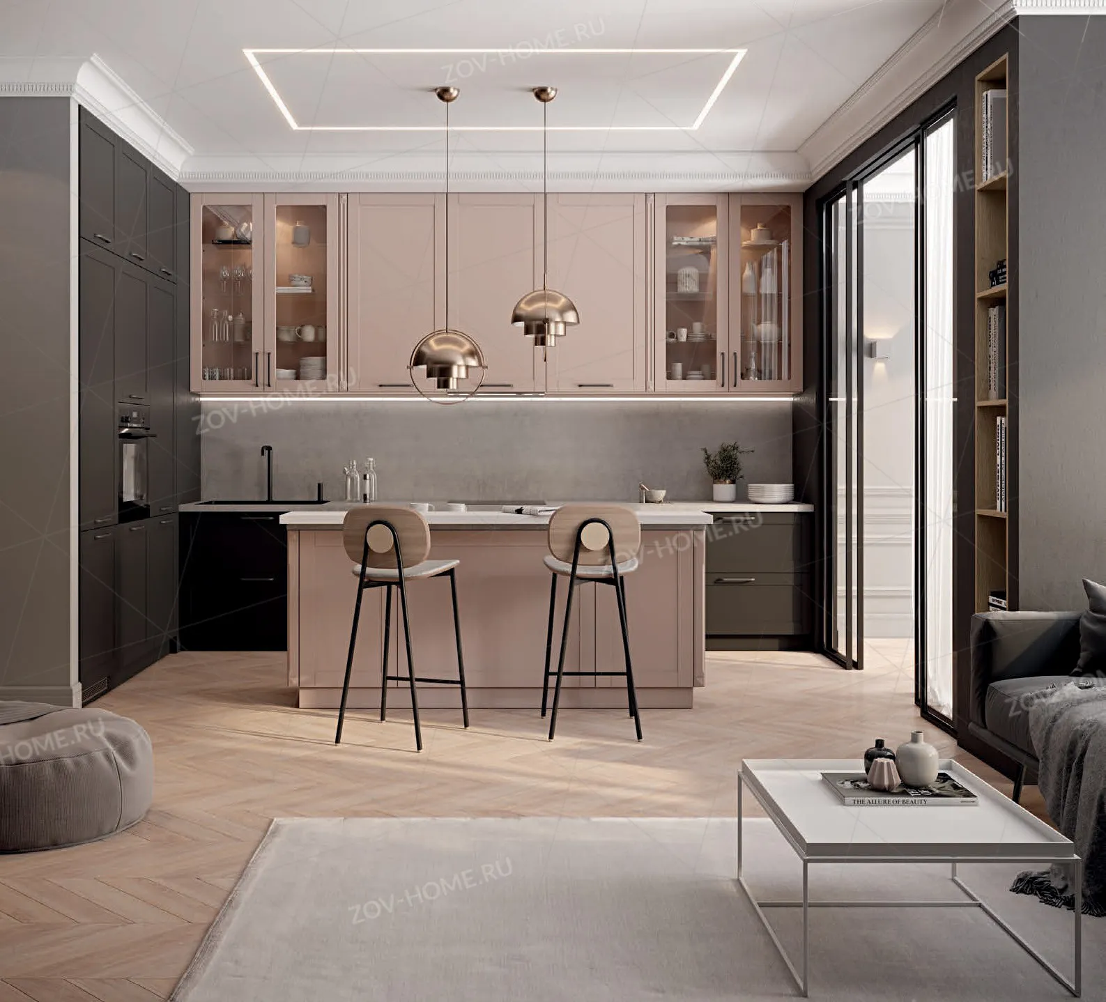 Цоколь: Крашеная МДФ, цвет NCS S 8000-N Матовый / NCS S 2010-R Матовый, высота 100 мм