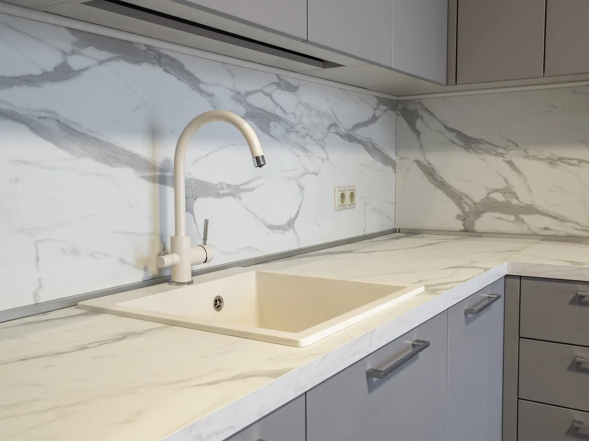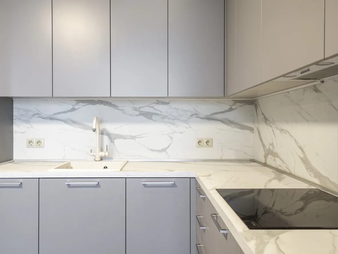 Столешница 38мм и стеновая панель в цвете Статуарио