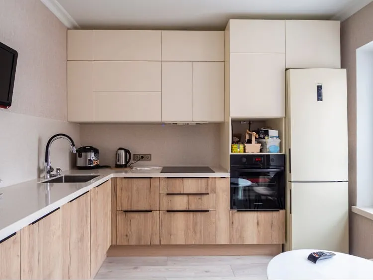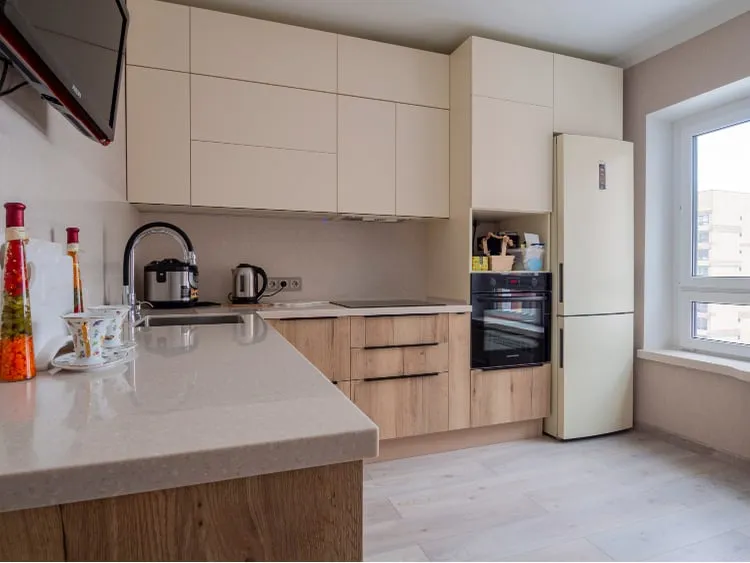 Фасады: Акрил-5 Сливки  мат / ЛДСП Тимбер Галифакс