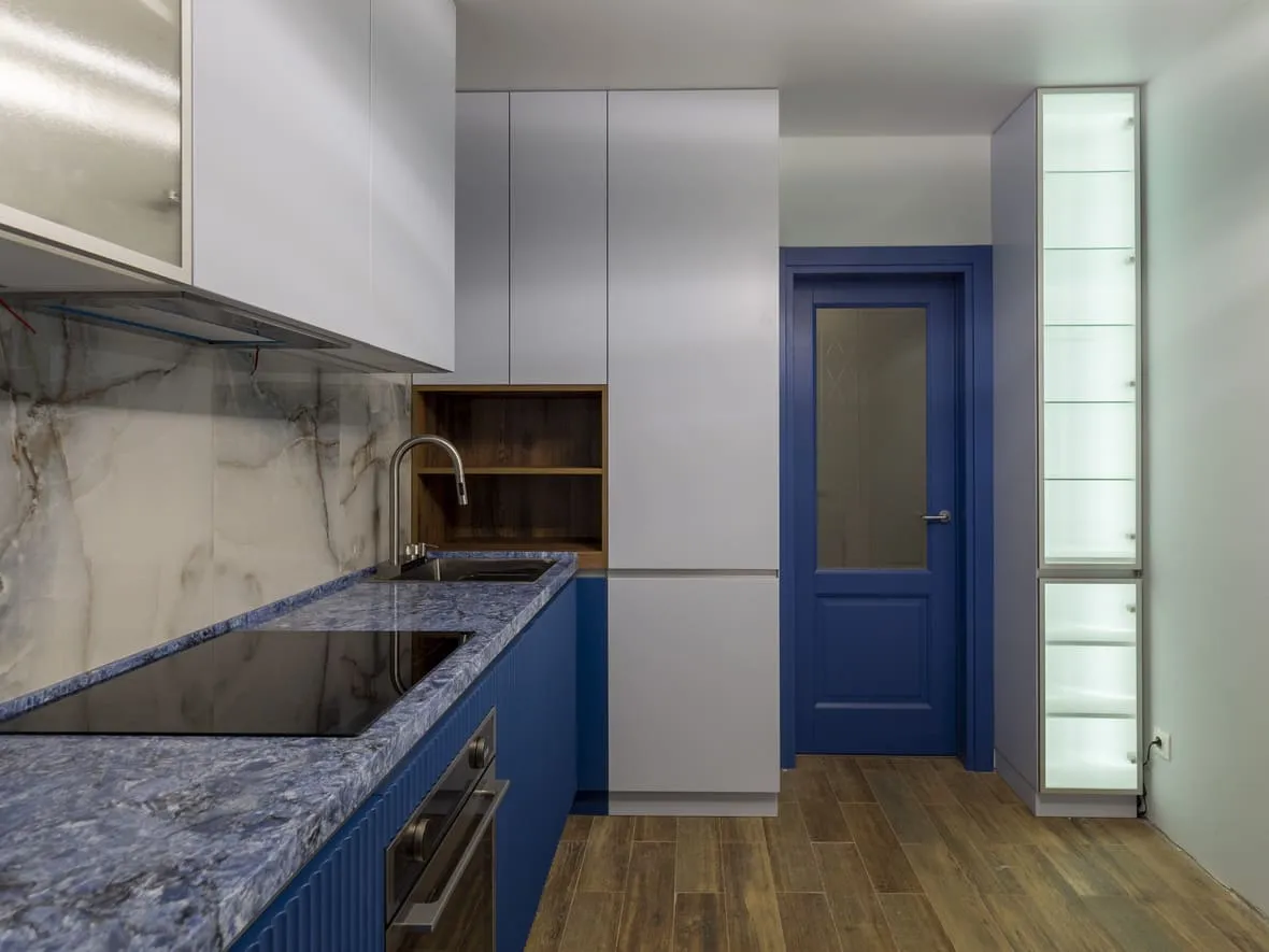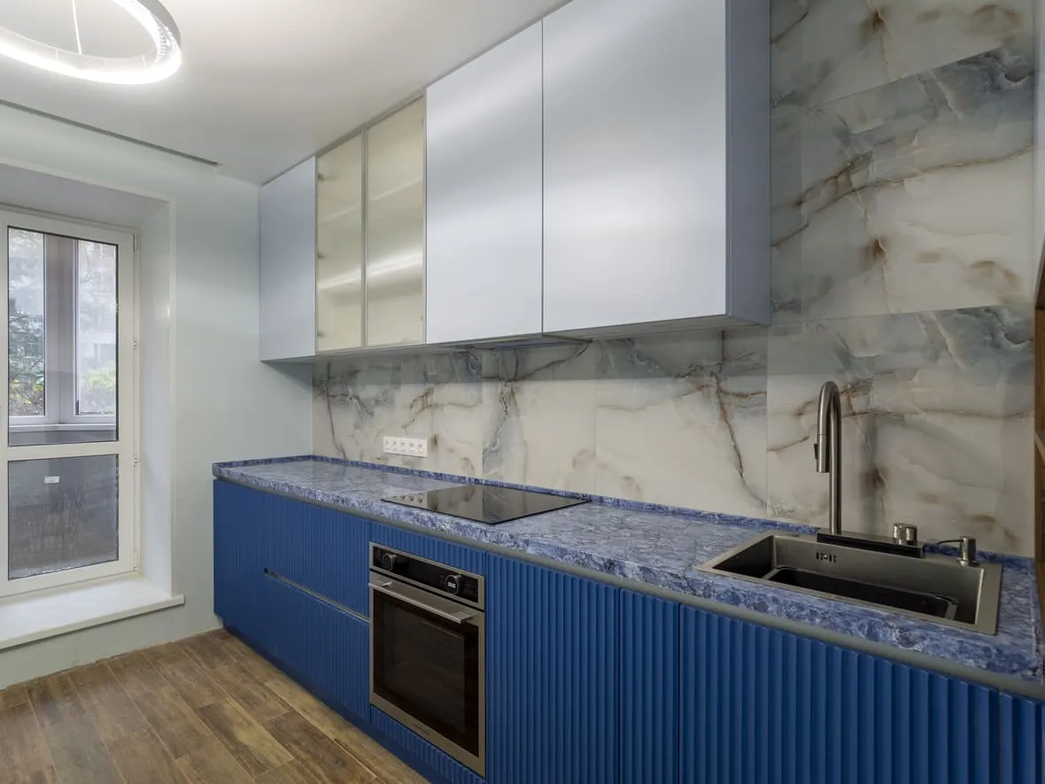 Фасад: Флавио в цвете RAL 5023: Краска в цвете NCS S 1010-R80B; RAL 5023