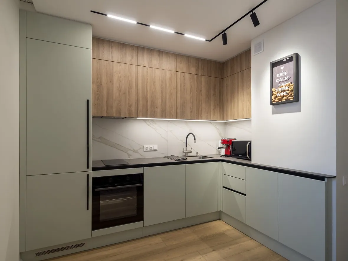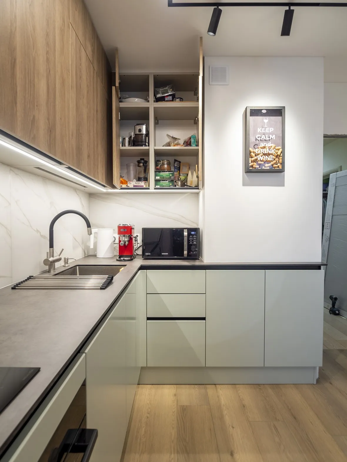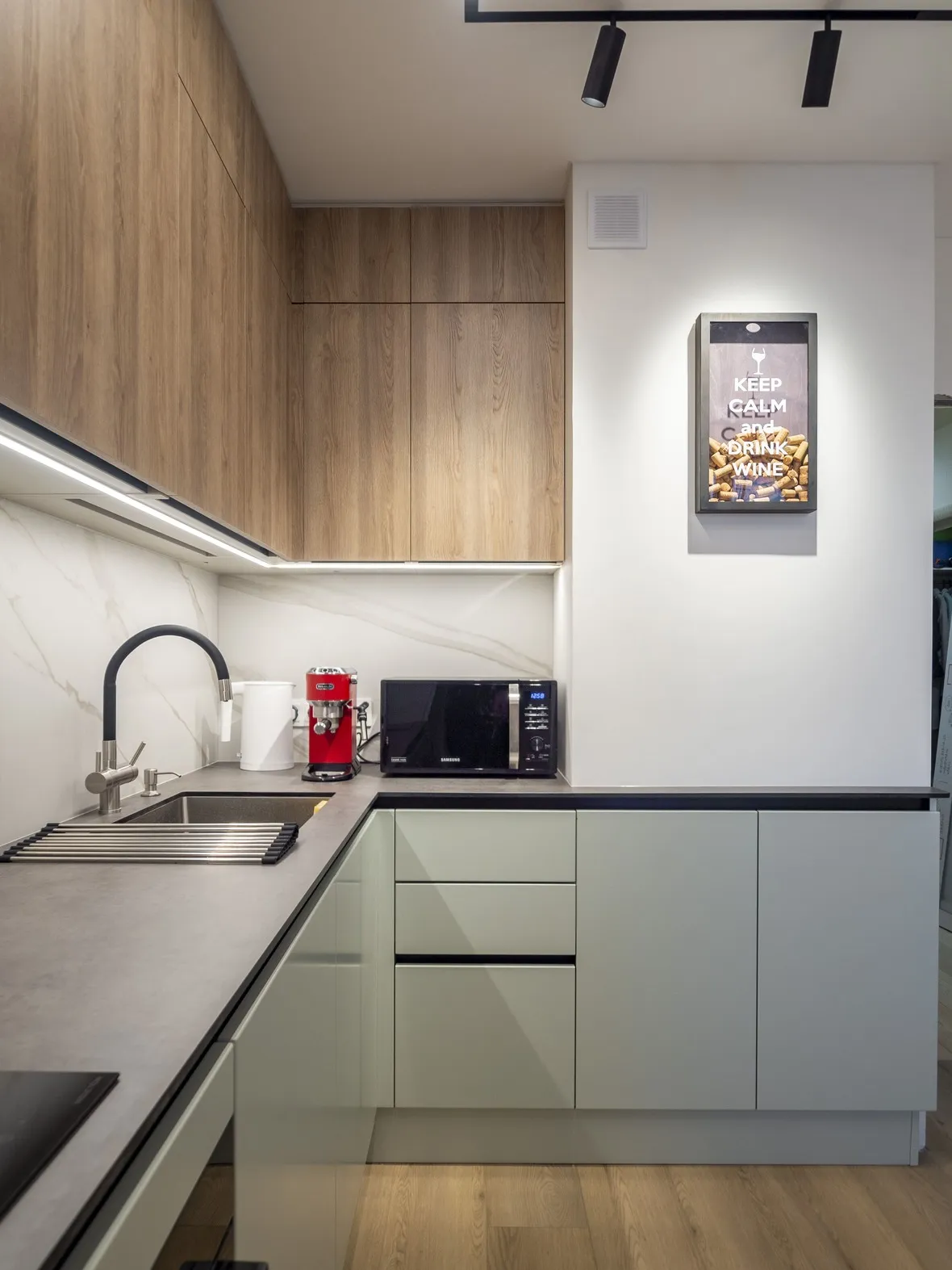 Фасад: Система в цвете RAL 9018; Тимбер в цвете Сабиа